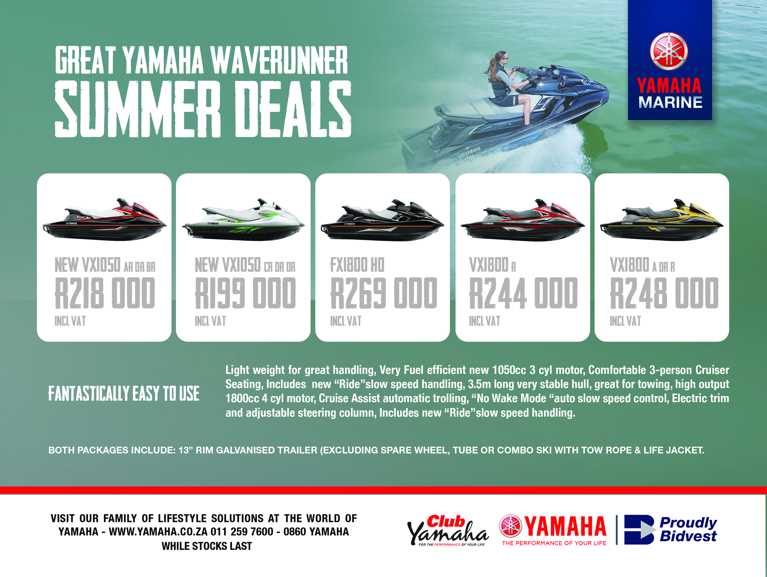 Yamaha Waverunner Summer Specials Posted on November 17, 2016November 21, 2016 by MarlonS Related Post Yamaha Summer Deals 2018 Rebel 533-S V322 Pontoon craft Mystique 19 AR242 X E-Series